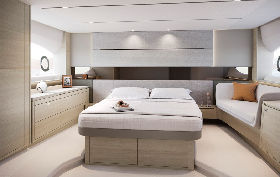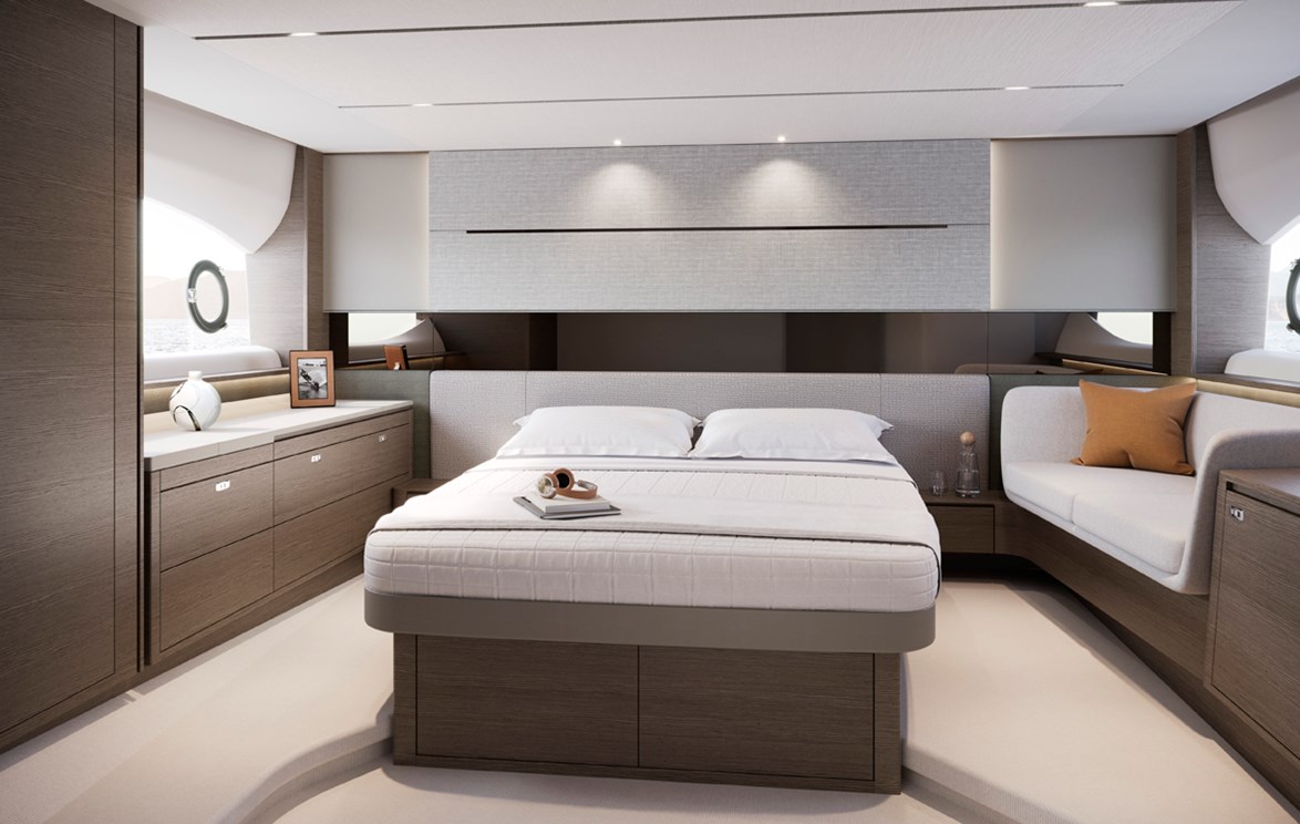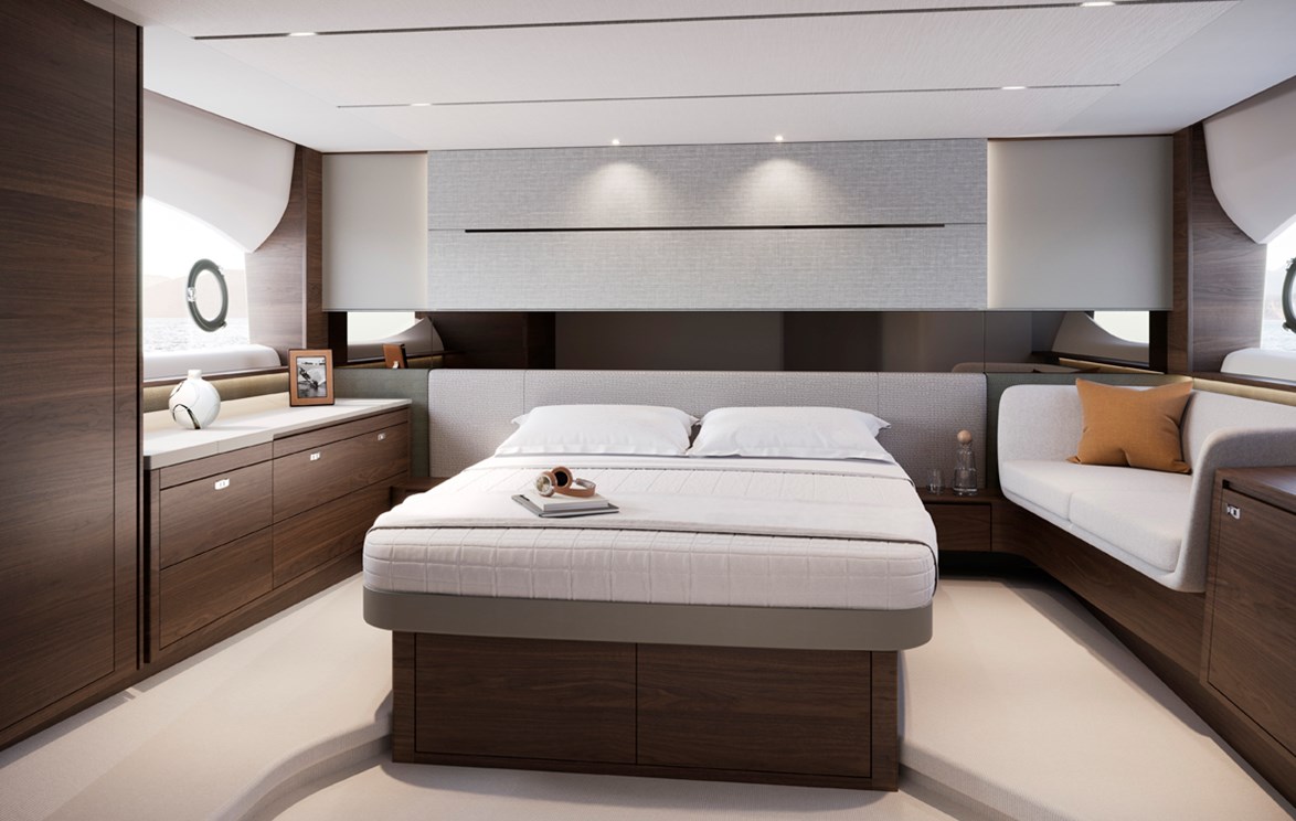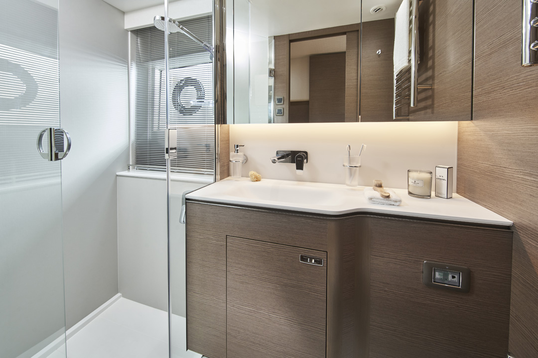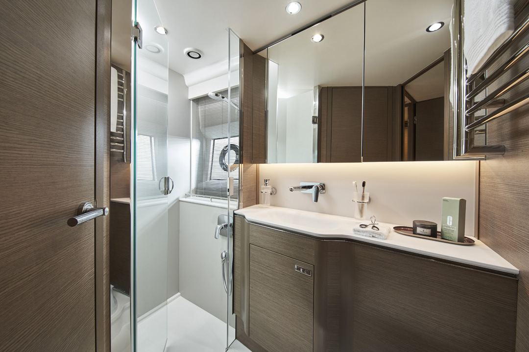 Customise your yacht with a choice of 4 timber finishes. Choose from Alba Oak or Rovere Oak in a satin finish as standard. Alternatively you can select Silver Oak or Walnut in a choice of satin or gloss finishes as an option.