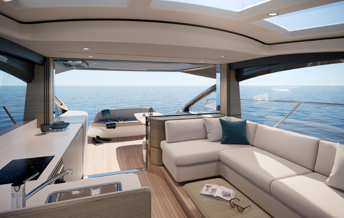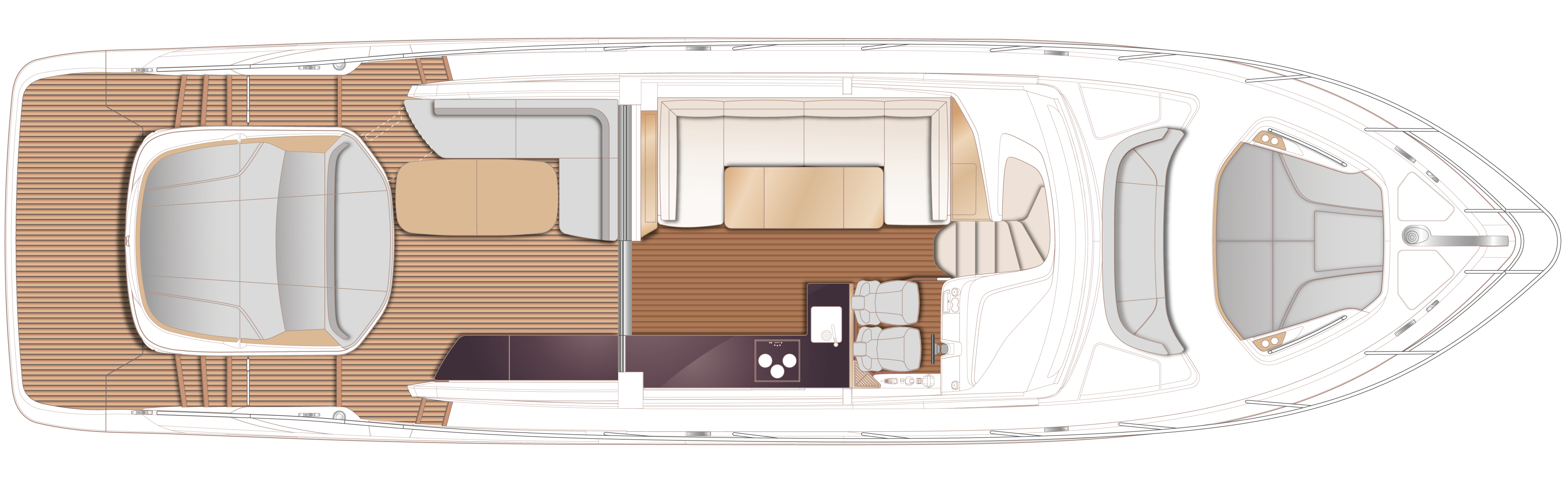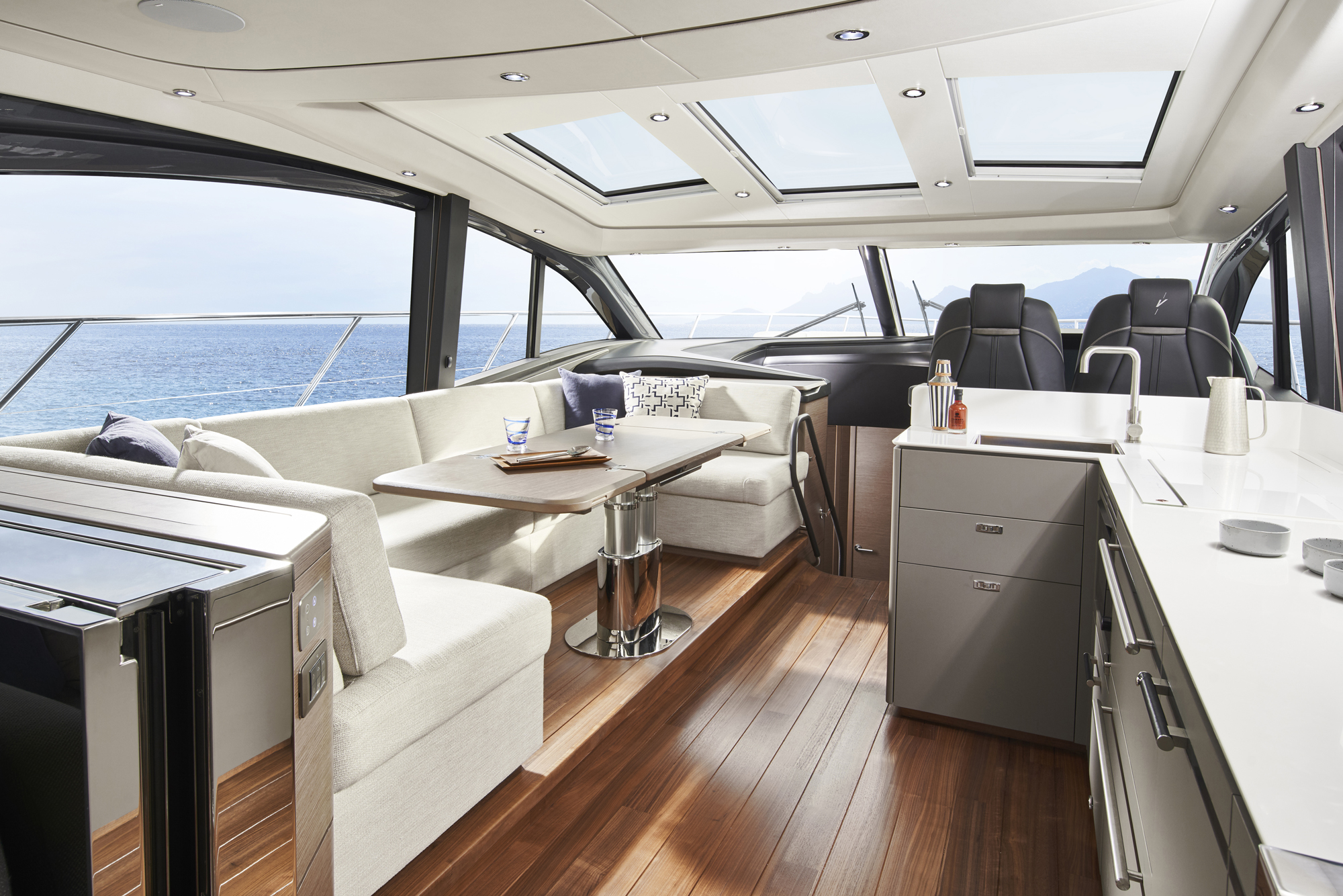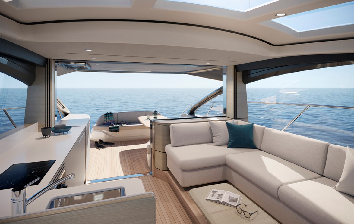 Customise your yacht with a choice of 4 timber finishes. Choose from Alba Oak or Rovere Oak in a satin finish as standard. Alternatively you can select Silver Oak or Walnut in a choice of satin or gloss finishes as an option.