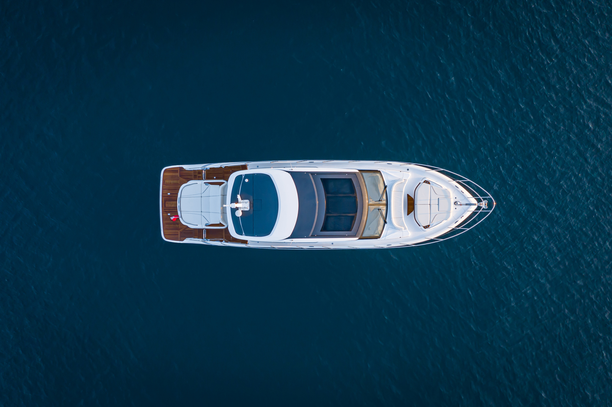 Her main deck has been purposely designed for those who enjoy true open-boating. The expansive cockpit features a large L-shaped seating area with additional seating aft around a substantial folding teak table served by a wetbar opposite with electric barbecue. This area connects to the saloon via a drop down sliding door and opening window aft of the galley, seamlessly integrating the two living areas as required. Her main deck also boasts a large sunpad located aft of the cockpit and a further foredeck seating and sunbathing area. With a top speed of 37 knots, she promises to deliver a powerful V Class sports yacht experience.