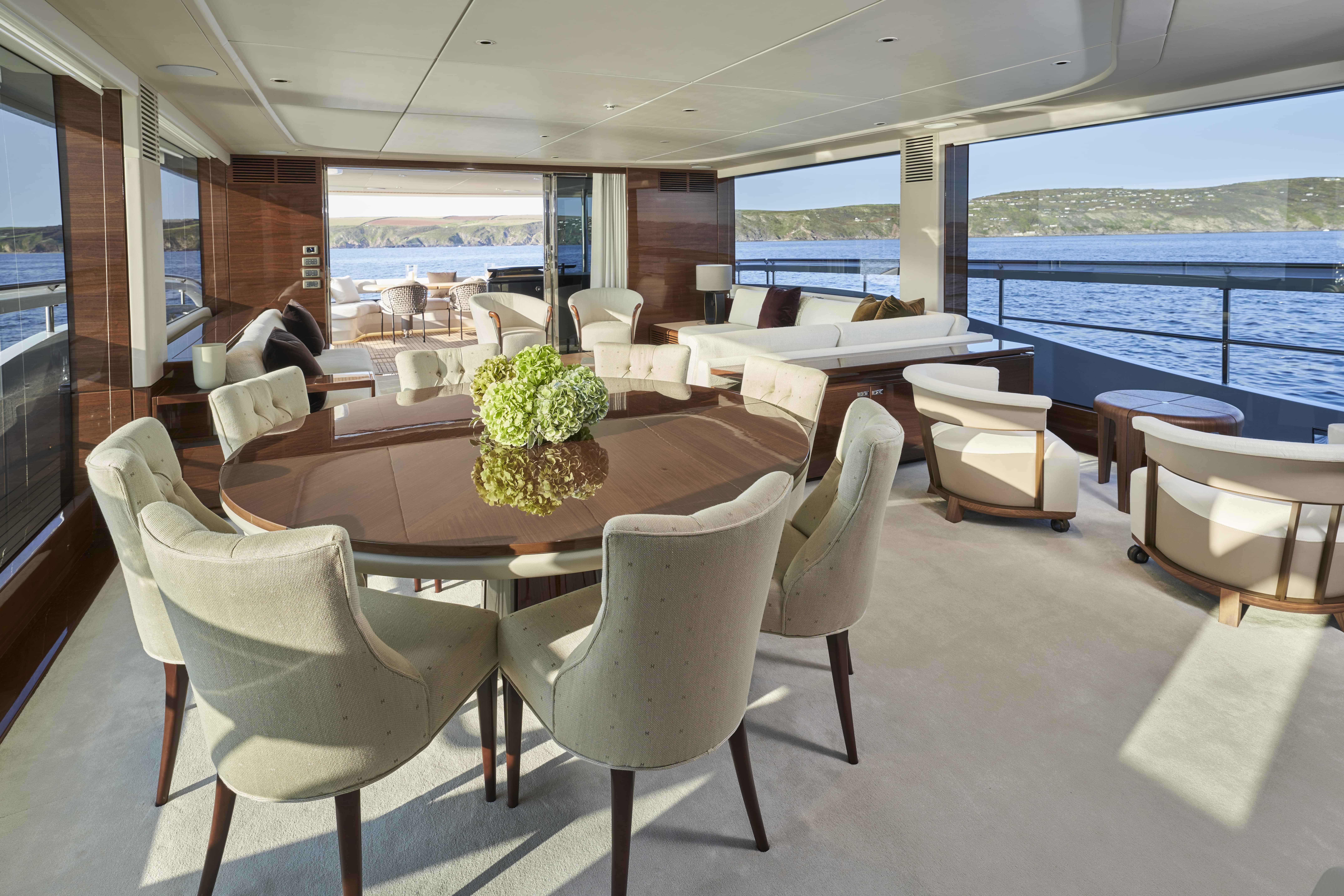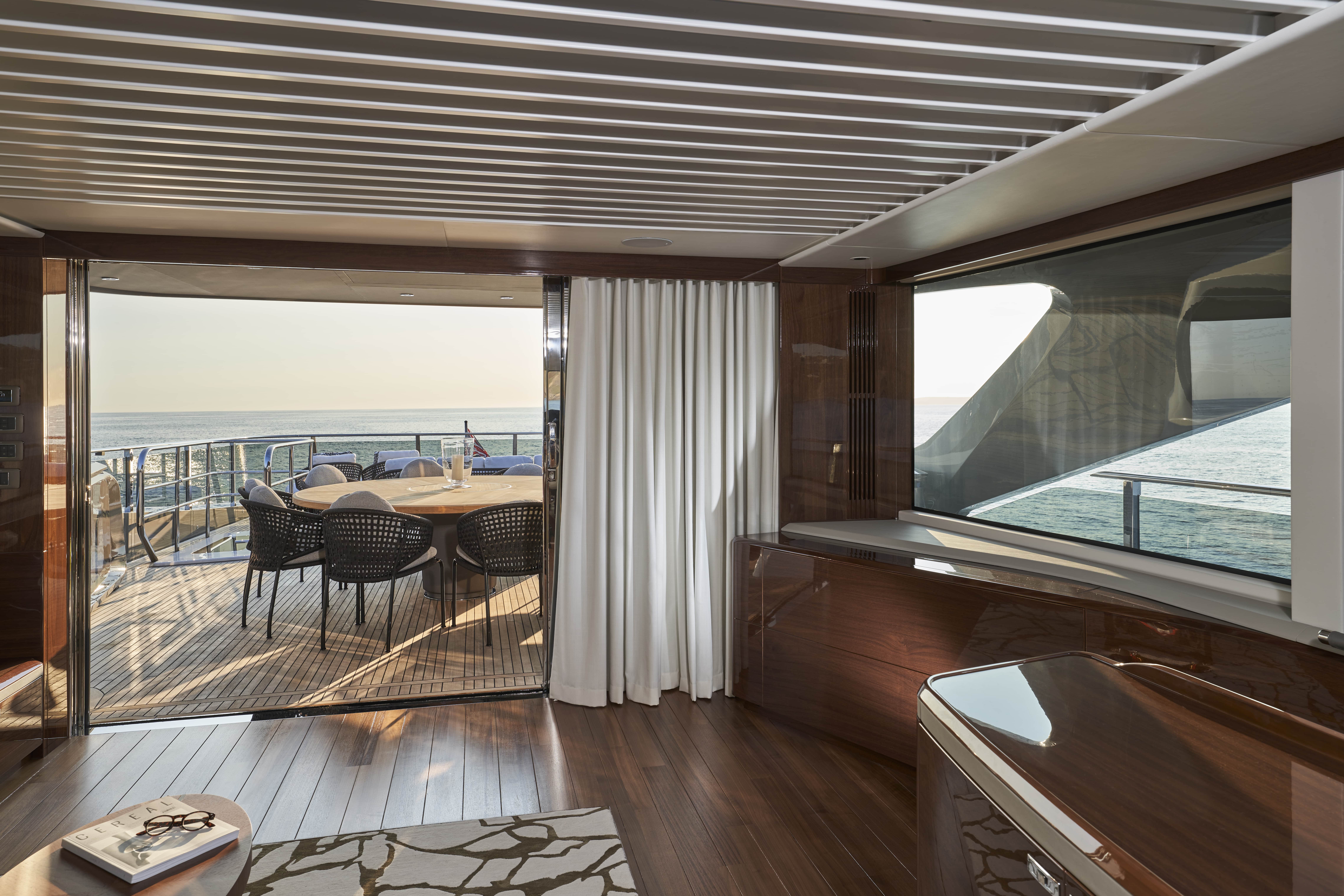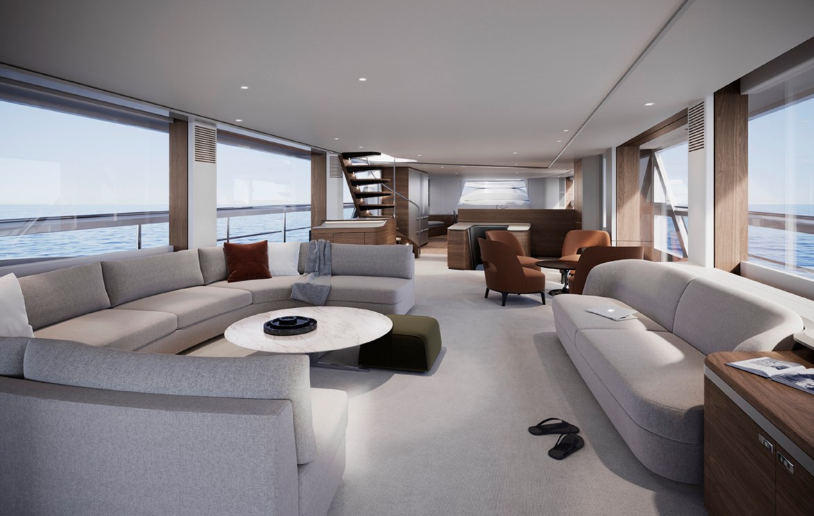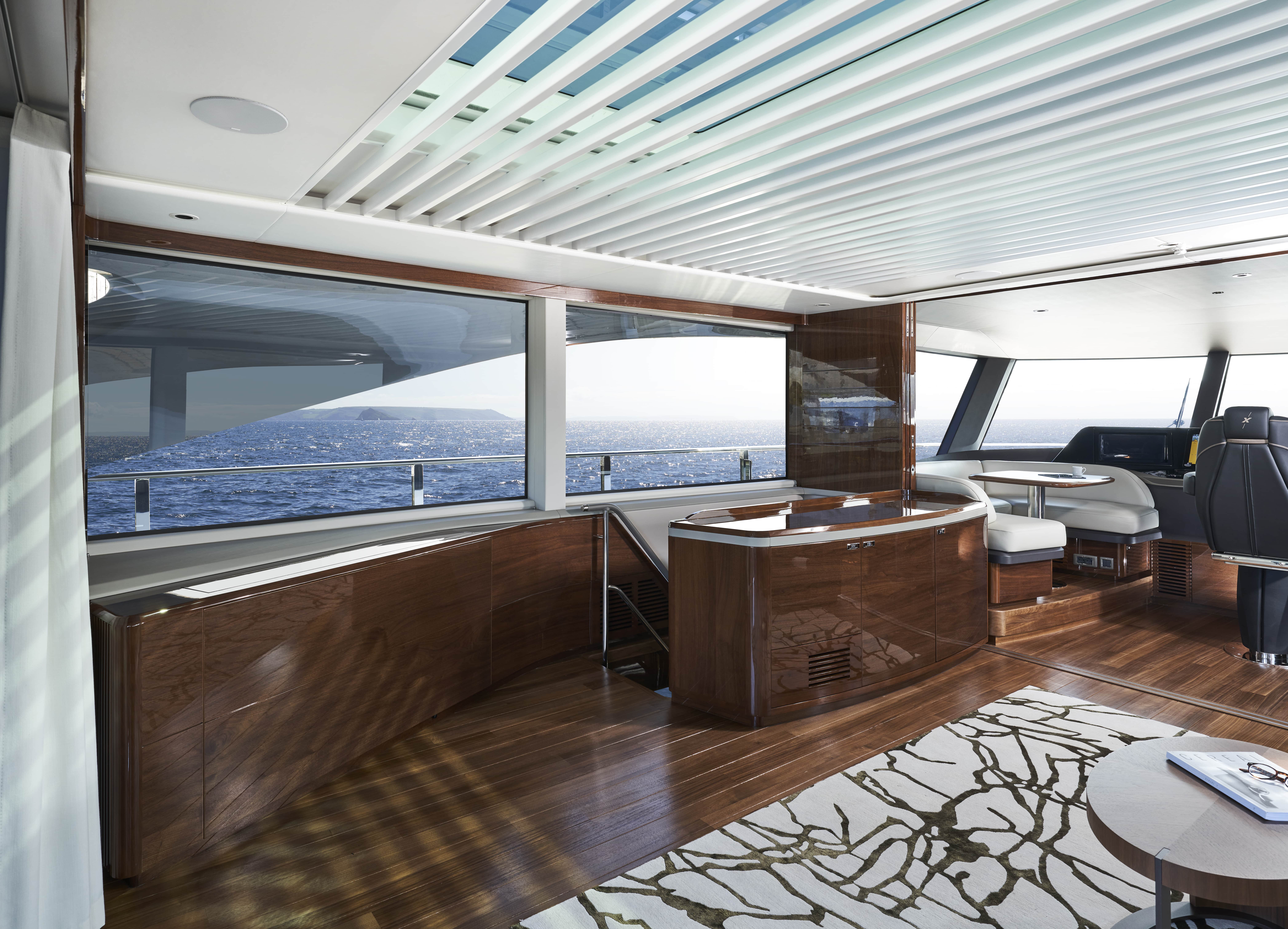 At its core is a unique concept for the flybridge and main deck interior space, both of which cover almost the full length of the yacht, creating the Super Flybridge – the X Class’s defining characteristic. The layout provides 10% more outdoor space and 40% more indoor space than a traditional motor yacht.