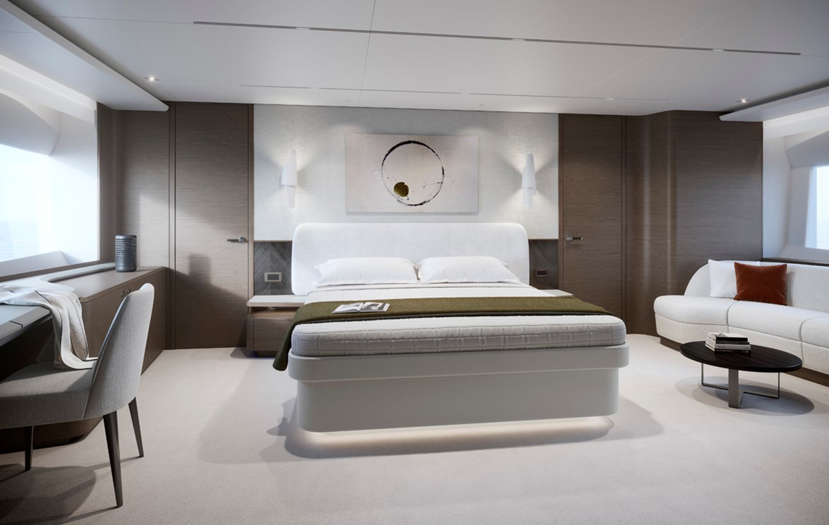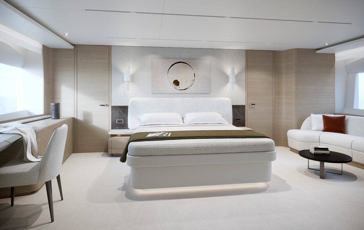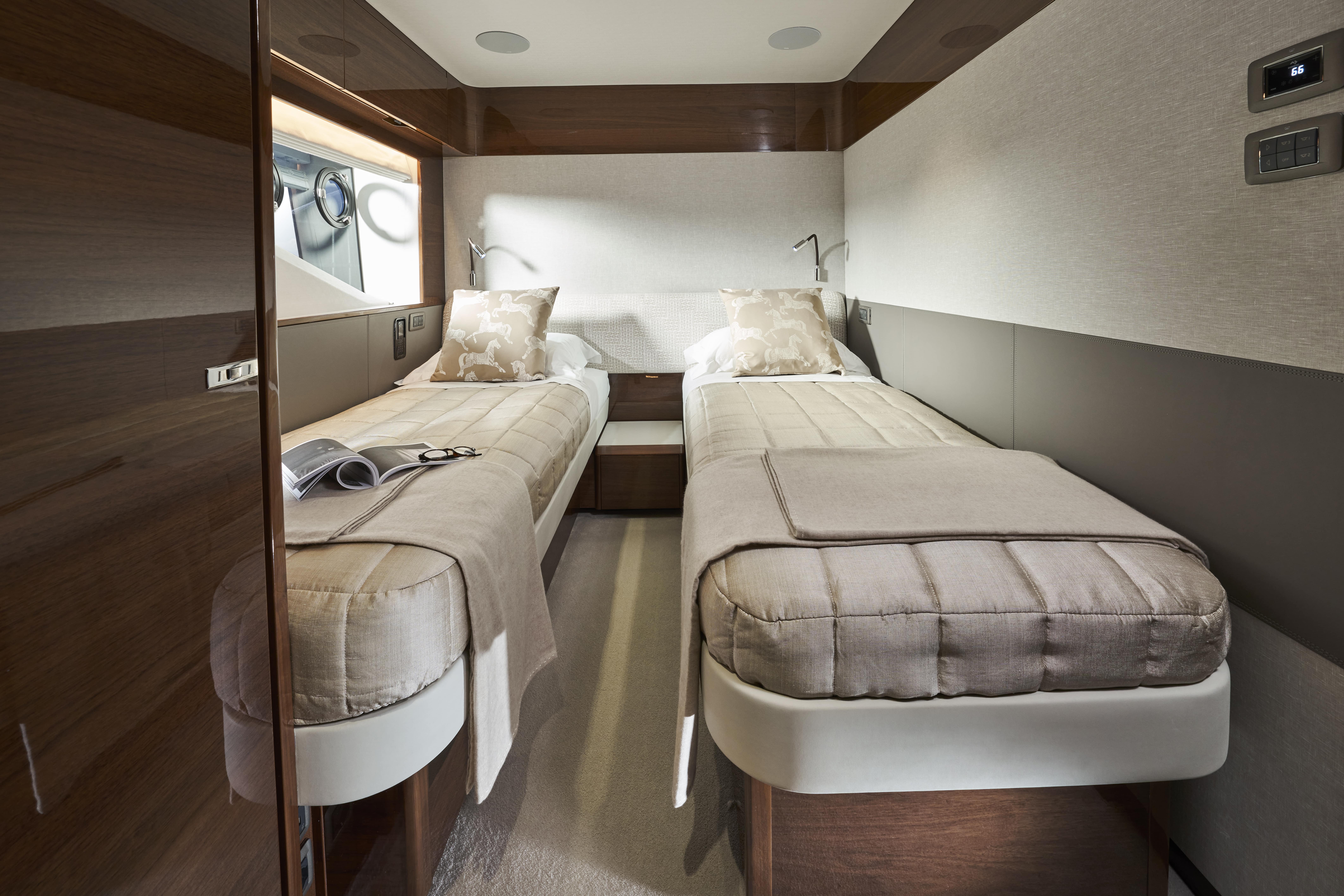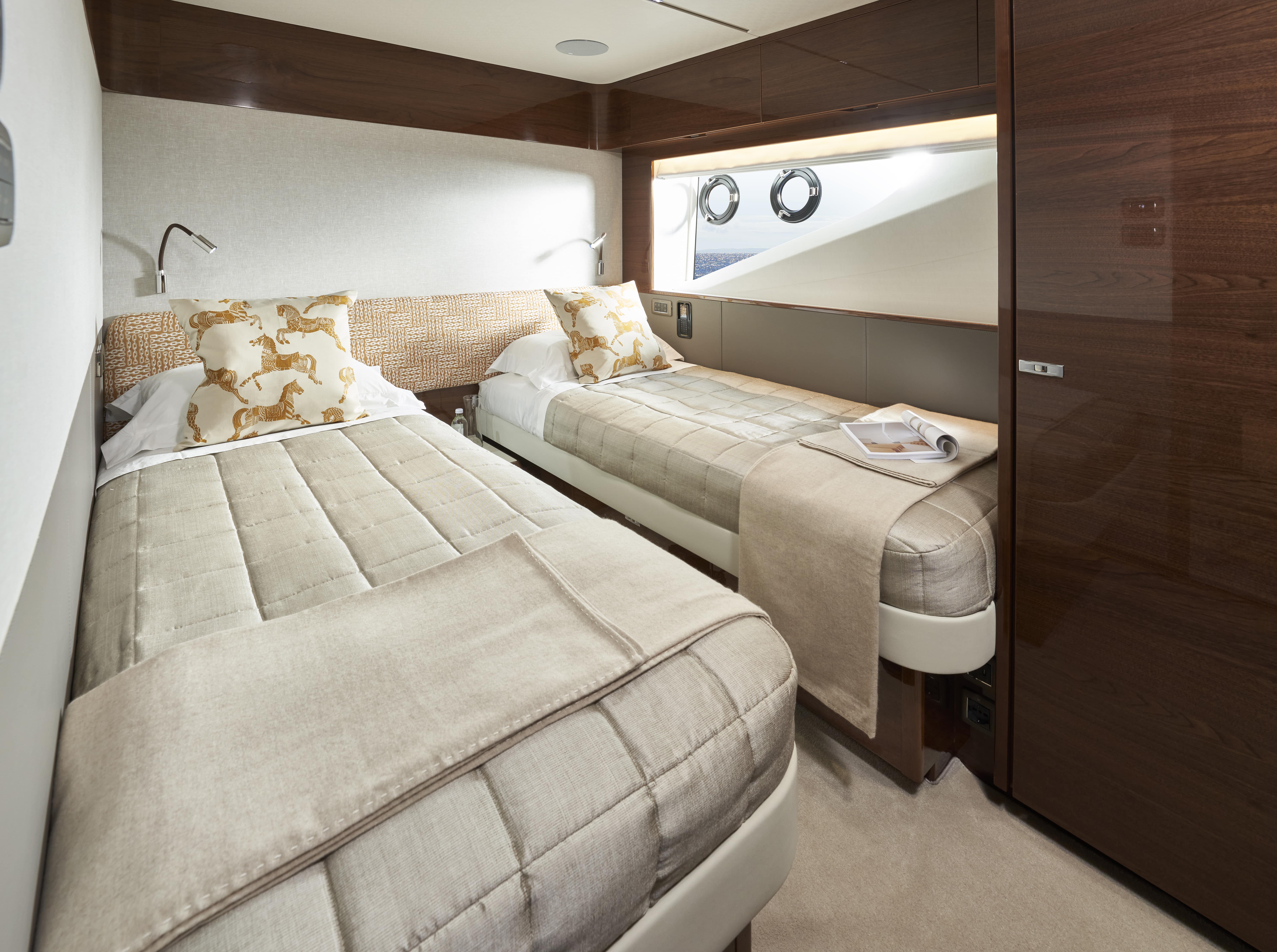 Customise your yacht with a choice of 4 timber finishes. Choose from Alba Oak or Rovere Oak in a satin finish as standard. Alternatively you can select Silver Oak or Walnut in a choice of satin or gloss finishes as an option.