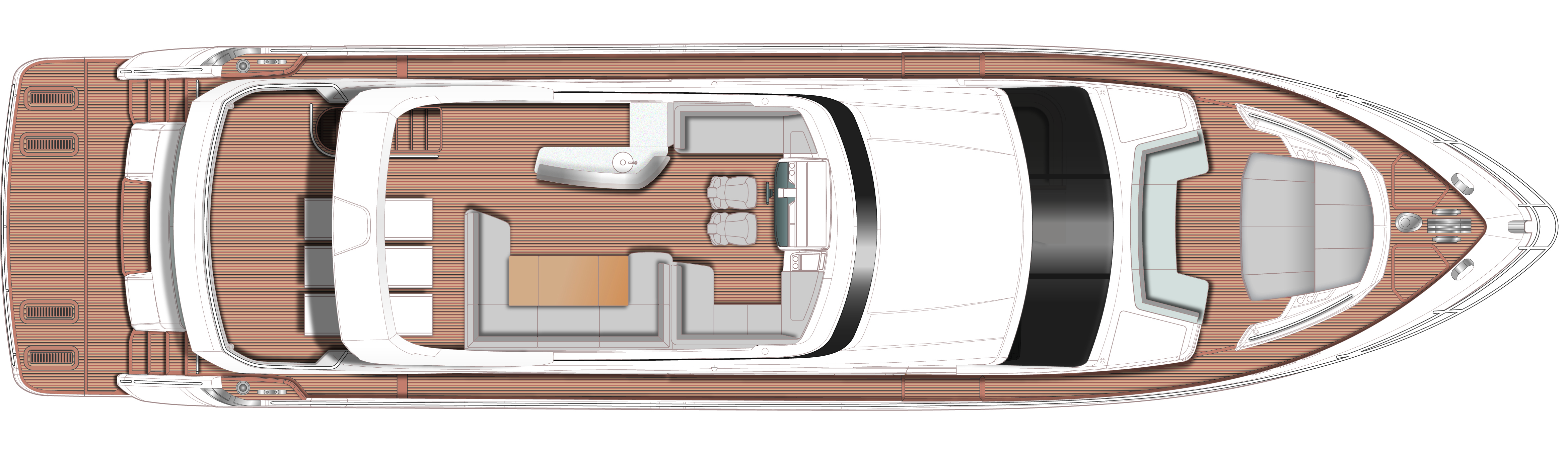 † Maximum speeds will vary depending on cleanliness of hull, condition of sterngear, loading of craft, water and air temperatures, sea conditions and other factors. Speed estimates are therefore given in good faith but without warranty or liability on the part of Princess Yachts Limited. Craft illustrated in this brochure may be fitted with certain optional equipment. Specifications may be changed at any time without notice or liability. USA Specification
