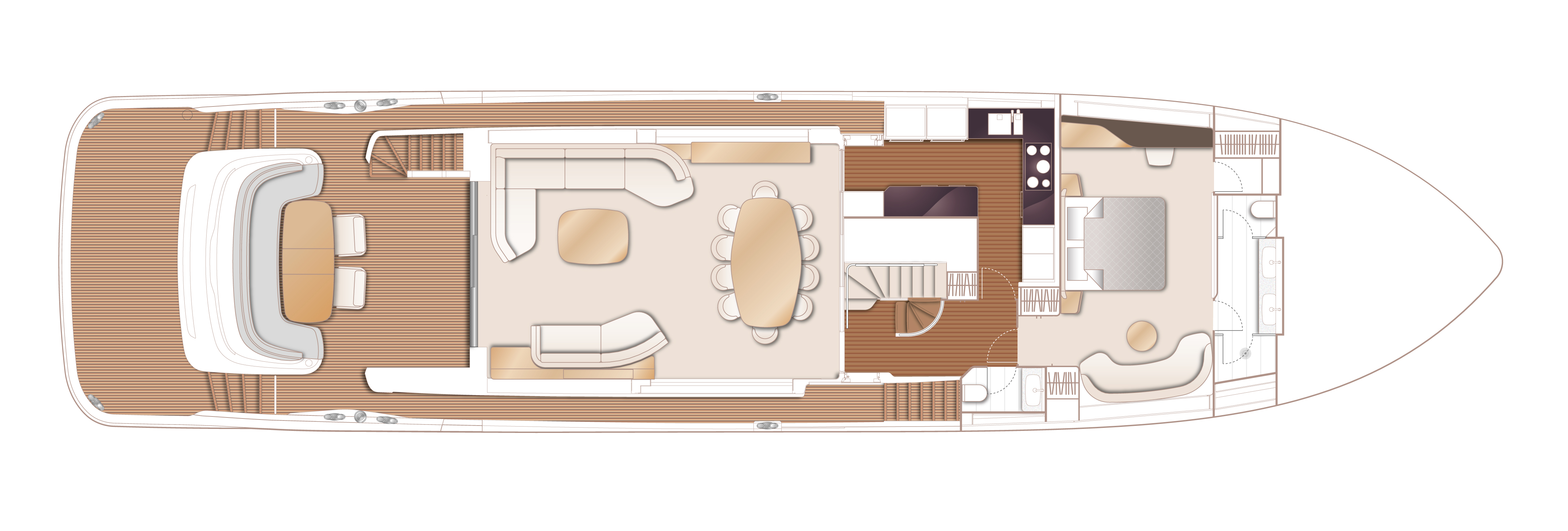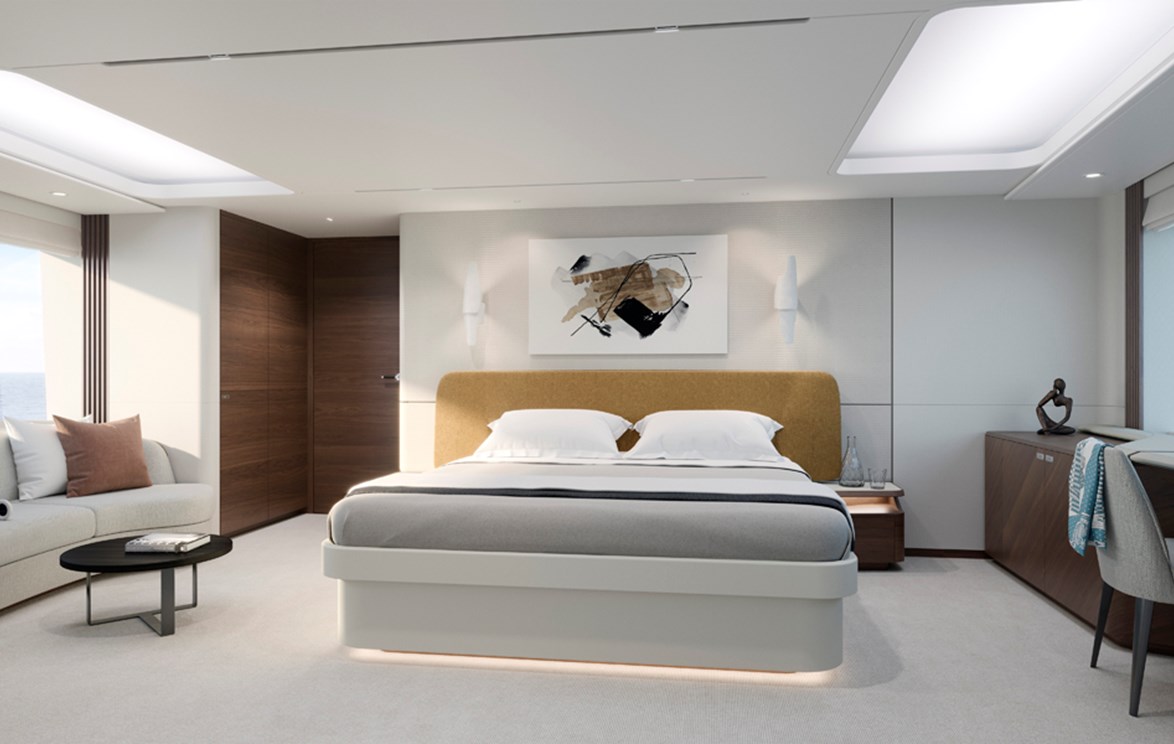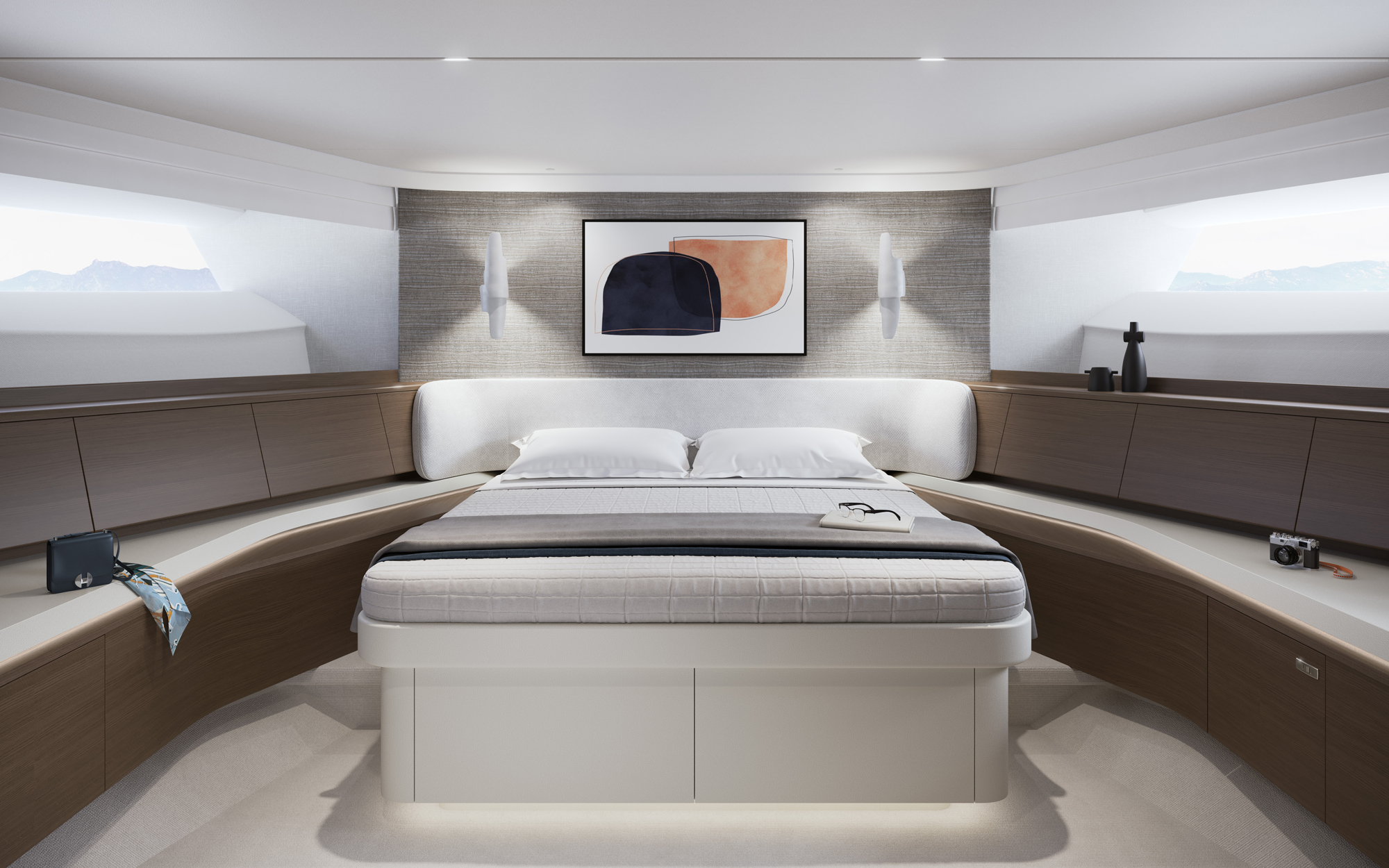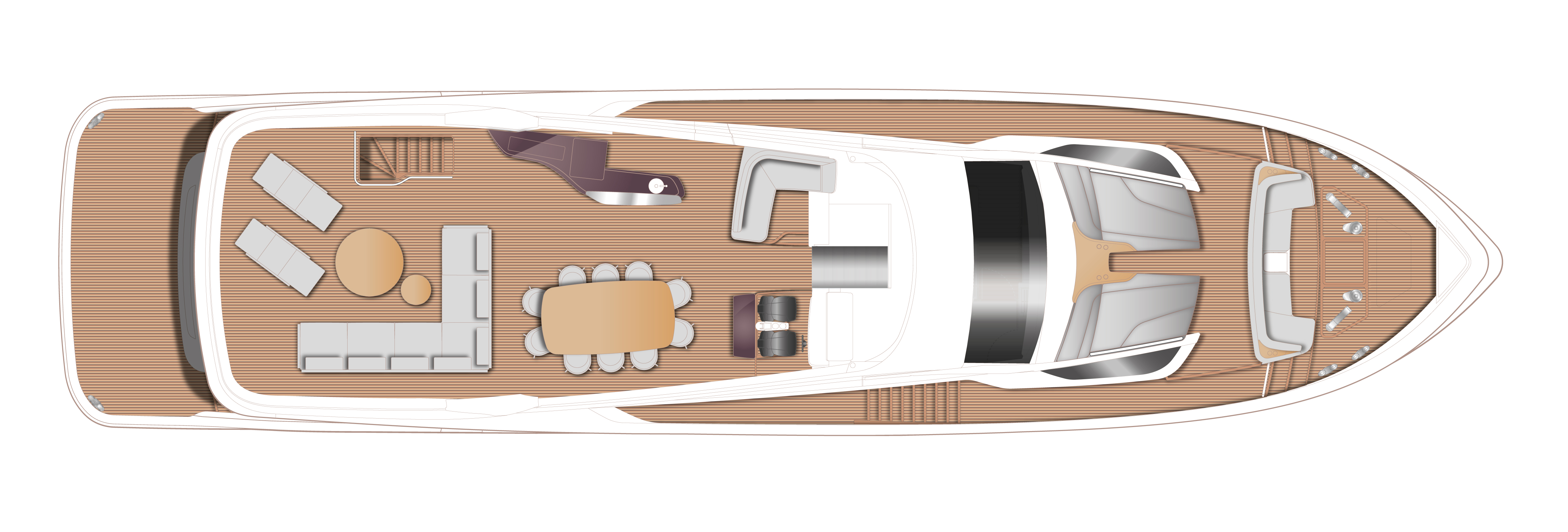 Customise your yacht with a choice of 4 timber finishes. Choose from Alba Oak or Rovere Oak in a satin finish as standard. Alternatively you can select Silver Oak or Walnut in a choice of satin or gloss finishes as an option.