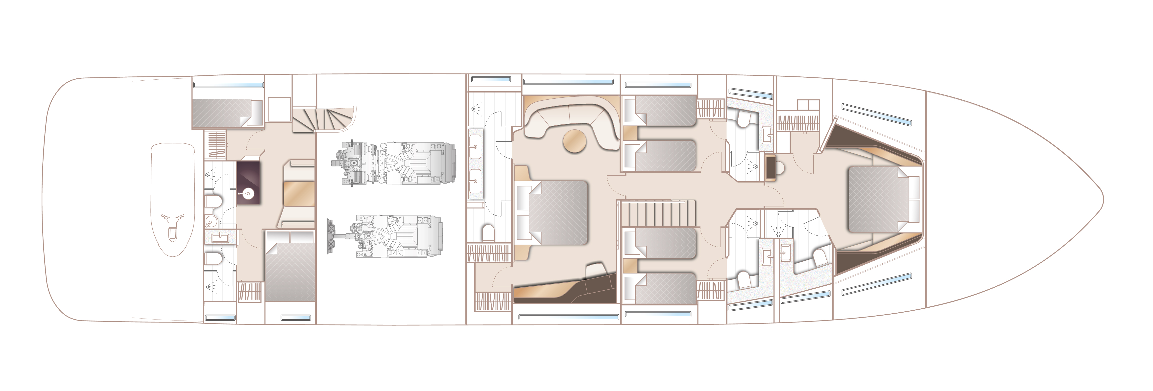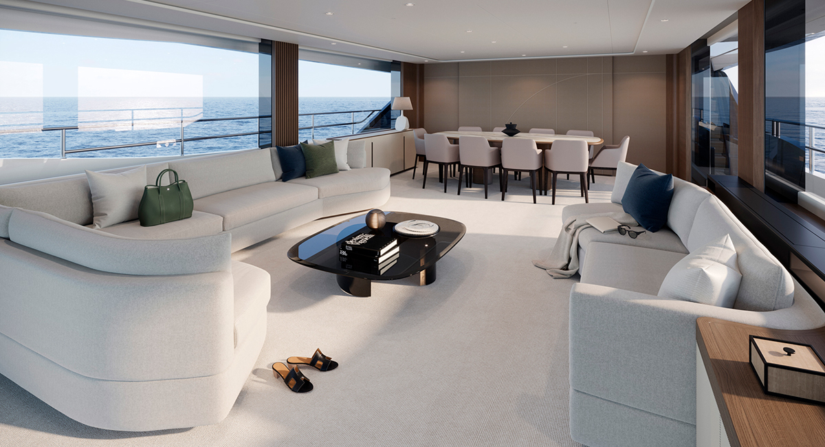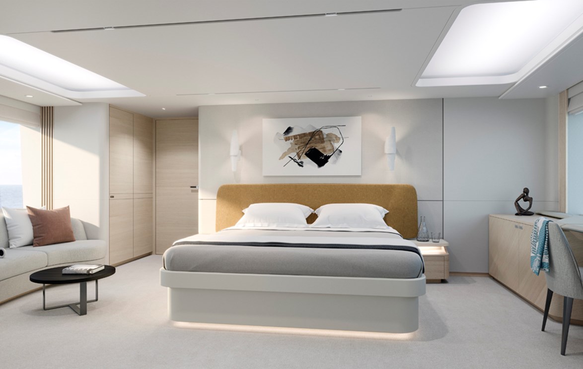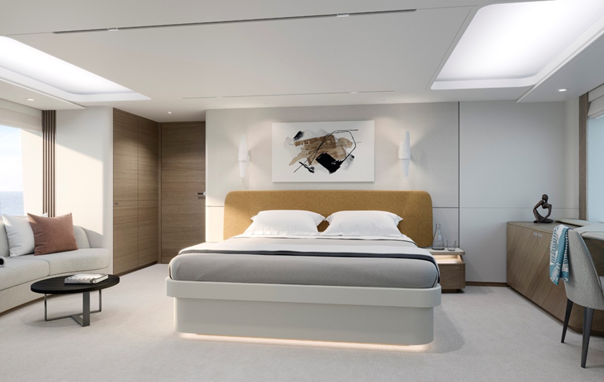 Customise your yacht with a choice of 4 timber finishes. Choose from Alba Oak or Rovere Oak in a satin finish as standard. Alternatively you can select Silver Oak or Walnut in a choice of satin or gloss finishes as an option.
